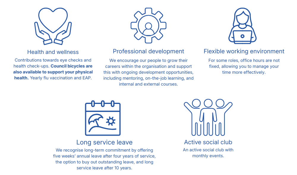 Looking after our people is important to us. That’s why when you join the Whanganui District Council as a permanent employee you’ll be eligible for a range of benefits.